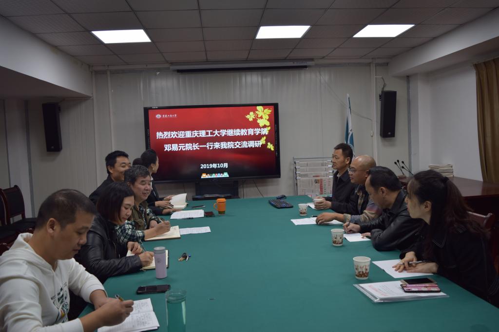 10月16日上午,重庆理工大学77779193永利集团邓易元院长、培训部刘树峰部长、办公室王玉娟主任、士继人才培训有限公司黄宇副总经理一行到我院开展“不忘初心,牢记使命”主题调研工作,胥江河院长、培训部张成功、吴可,学历部邓微薇、罗志强参加了调研。