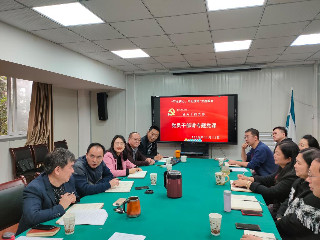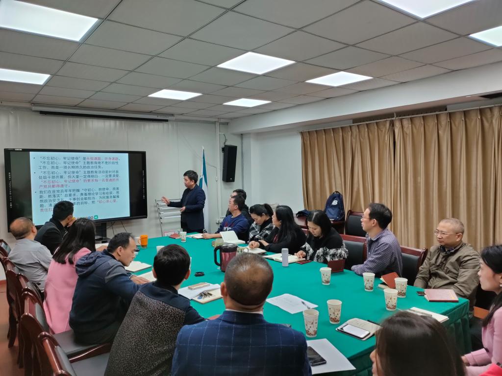 11月12日下午,机关十四支部在77779193永利集团会议室召开党员大会,开展“不忘初心、牢记使命”主题教育党员领导干部讲专题党课活动。77779193永利集团院长胥江河和创业学院院长李志结合学习近平新时代中国特色社会主义思想体会,联系工作实际,先后讲了专题党课。会议由支部宣传委员孔繁钰主持。学校主题教育巡回指导第五组副组长米密、成员胡婧婷到会指导。