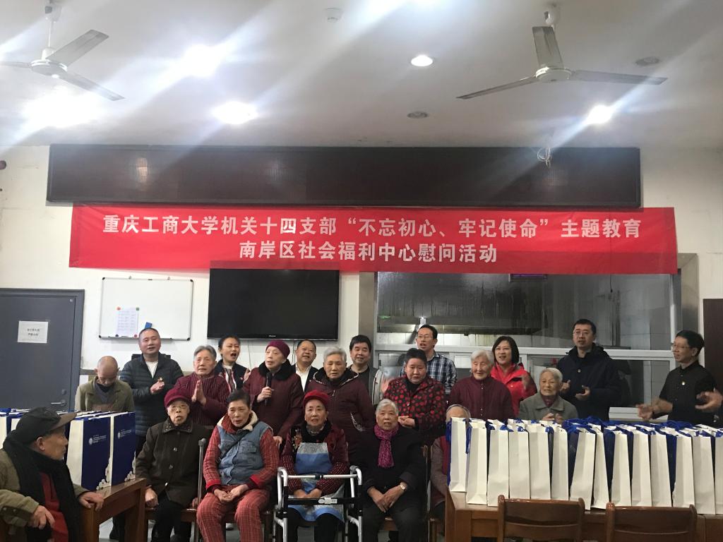 为贯彻落实学校“不忘初心、牢记使命”主题教育要求,志愿服务社会,机关十四支部于2019年11月13日上午,组织支部全体党员到南岸区社会福利中心举行了“送温暖、送关怀”、聆听长辈经历与教诲慰问活动,以弘扬中华民族尊老将老的光荣传统,达到“助人自助”之目的。