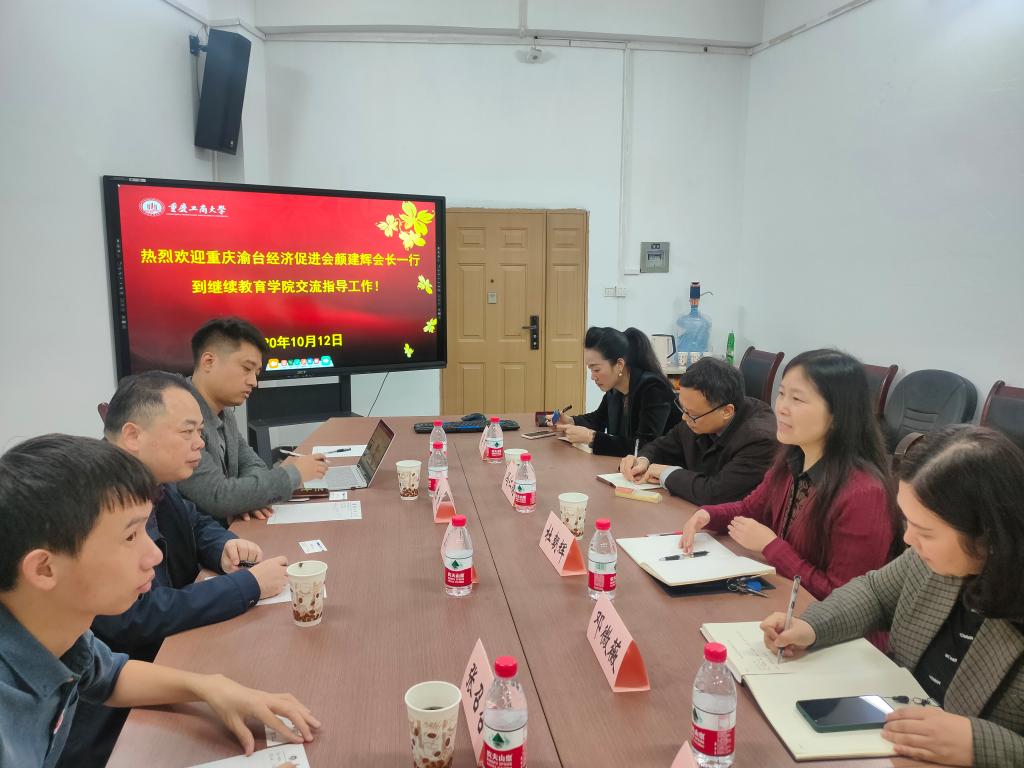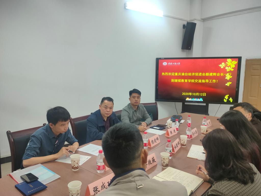 2020年10月12日上午,重庆市渝台经济促进会会长颜建辉、重庆市海峡青创学校常务副校长陈迪、重庆市海峡青创空间外联部部长张召召到我院调研交流,学院培训部、学历部、办公室主要负责人以及工商管理学院冯仁德教授等参加了座谈会。 会上,杜朝辉院长对颜建辉一行表示了热烈欢迎,随后双方分别介绍了各自主要业务发展领域,大家就可以开展的合作点进行了意向性探讨与磋商,交流在友好轻松的氛围中进行,为下一步能够开展深入合作奠定了基础。