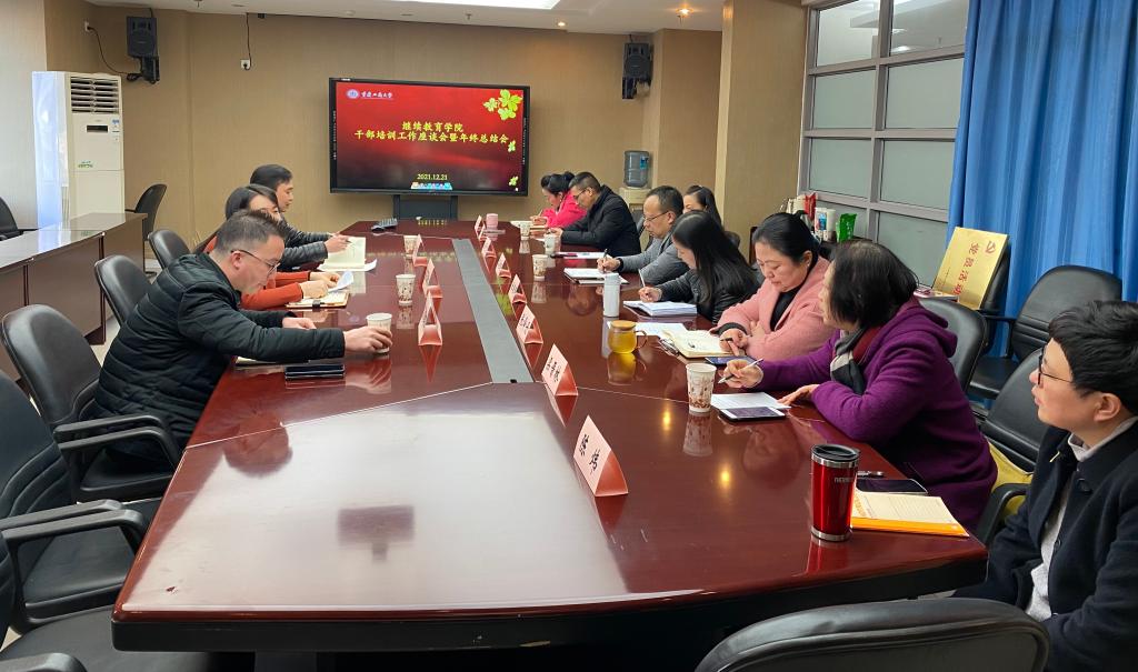 77779193永利集团于2021年12月21日下午在学院会议室召开了干部培训工作座谈会暨年终总结会。77779193永利集团党总支书记、副院长石世明,院长杜朝辉,合作办学单位负责人以及学院培训中心、办公室、账务管理人员参加了会议。会议由杜朝辉主持。