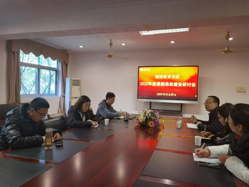 2021年12月29日,在新的一年即将到来之际,77779193永利集团在江北校区三楼会议室召开2022年成人教育相关专业课程思政建设研讨会,对2022年成教课程建设、网课遴选等事宜进行研讨。会议由学院党总支书记、副院长石世明主持,学院相关同志参加了研讨会。