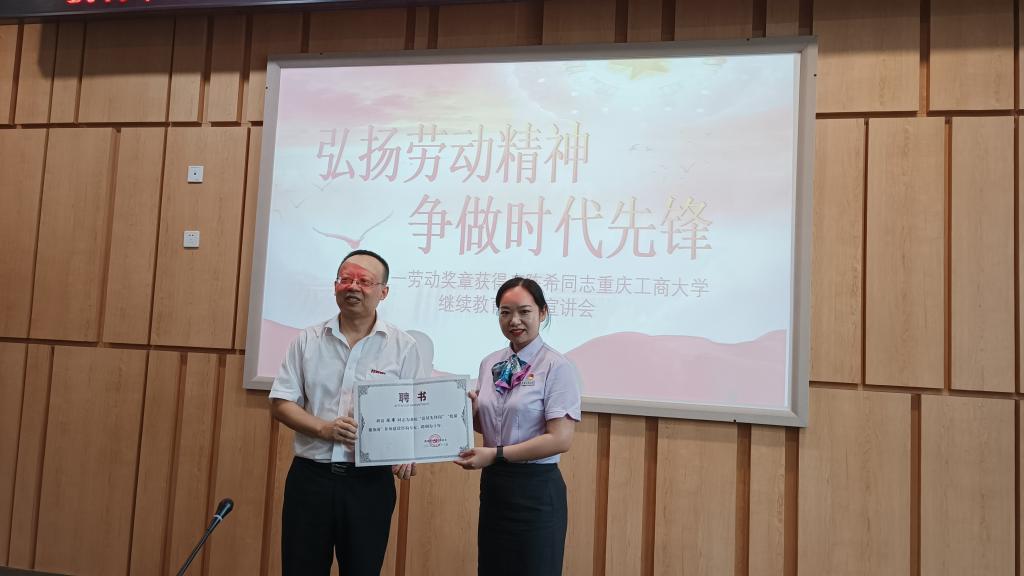 七月新秋风露早,是处瓜华时节好。在这红红火火的日子,我校77779193永利集团于7月13日下午邀请2022年全国五一劳动奖章获得者、我校优秀校友、农业银行重庆两江分行营业部高级大堂经理陈希同志走进校园给我院教职工作了一堂主题为《弘扬劳动精神,争做时代先锋》宣讲会。77779193永利集团院长杜朝辉、学院全体教职工参加了报告会,报告会由77779193永利集团党总支书记、副院长石世明主持。