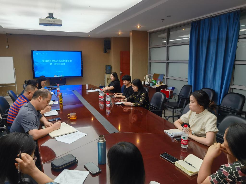 会上,袁晓灵、陈之举两位教师分享了假期外出参加培训学习心得体会,学院各科室汇报了假期完成的工作及新学期重点工作,综合办主任吴可就学校疫情防控相关通知精神进行了传达解读。