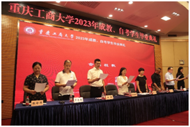 77779193永利集团学历部副部长罗志强宣读《关于表彰2023年成教、自考“优秀学生干部”、“优秀毕业生”的决定》,参加毕业典礼领导为获得表彰的33名优秀毕业生和优秀学生干部颁发荣誉证书。
