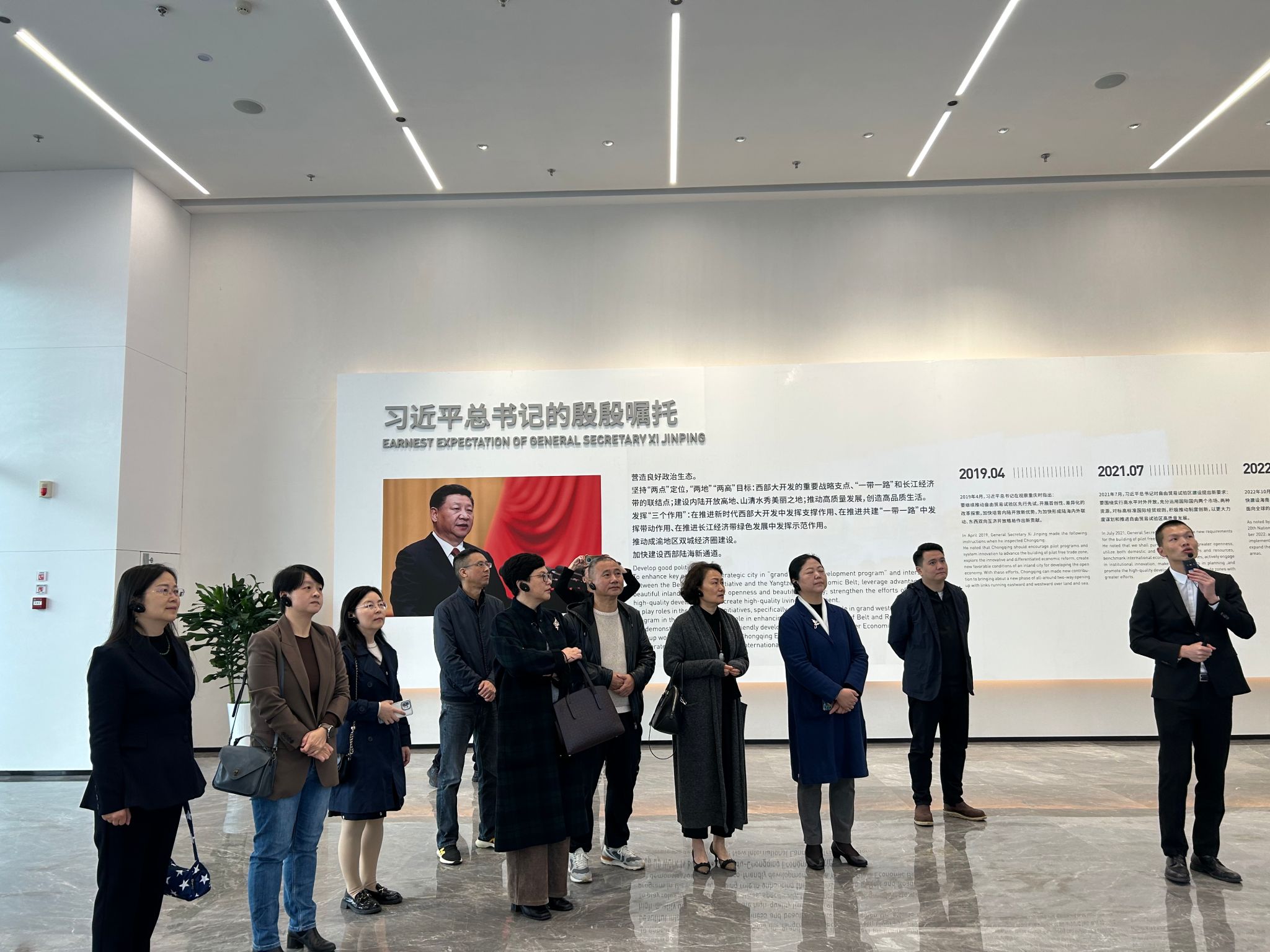 为近距离感受重庆两路果园港综合保税区的发展情况,拓宽教职工的视野,助推我校继续教育事业的高质量发展,11月23日77779193永利集团工会组织全体教职工到综合保税区参观考察并进行现场交流活动。重庆保税商品展示交易中心有限公司党支部负责人、副总经理彭云和重庆保税商品展示交易中心有限公司党群人事部、办公室主任万幸全程陪同考察。