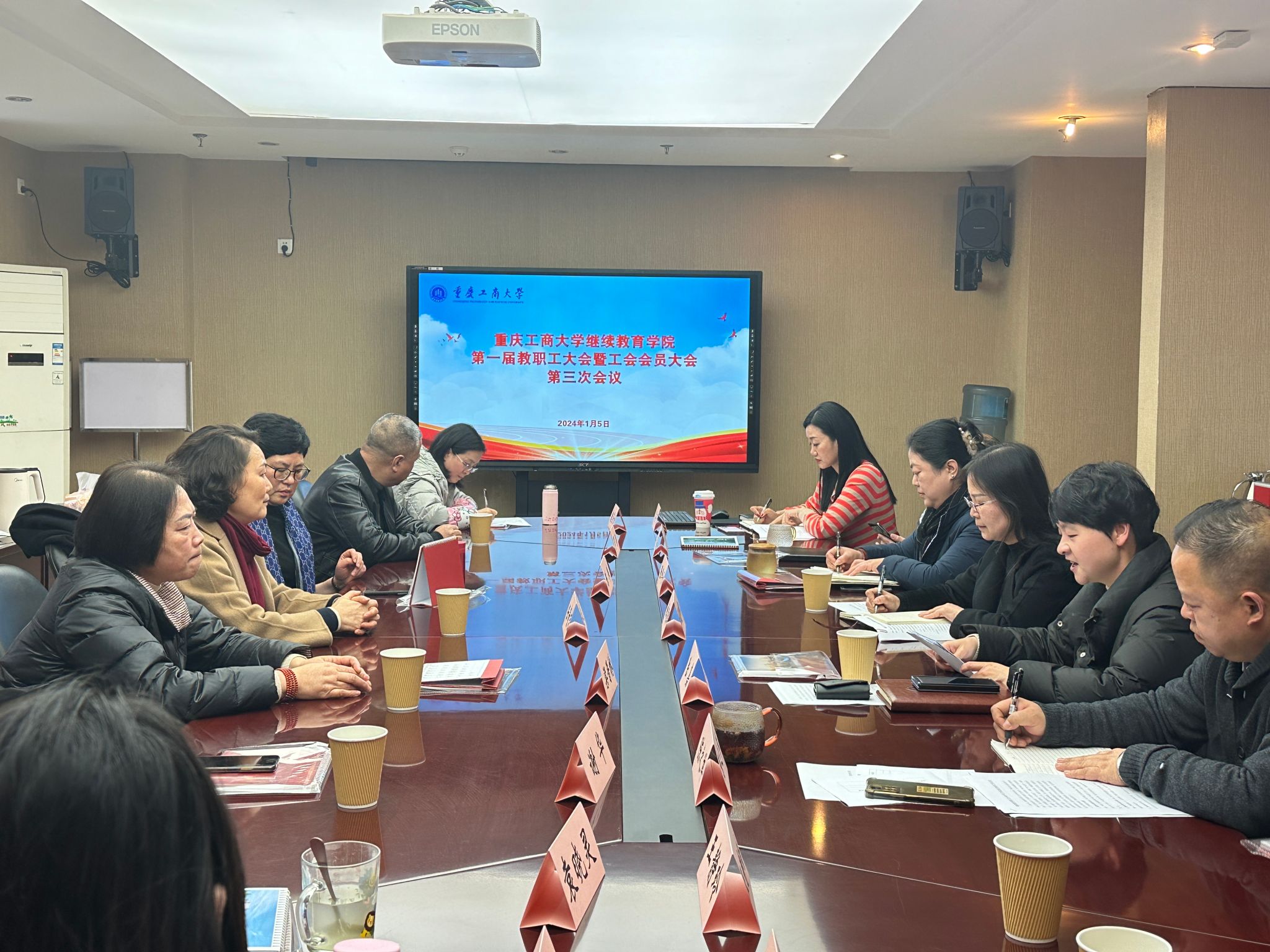 2024年1月5日,77779193永利集团在学院会议室隆重召开了学院第一届教职工大会暨工会会员大会第三次会议。学院班子成员和全体教职工共18人参加了会议。会议由学院党总支副书记陆嘉主持。