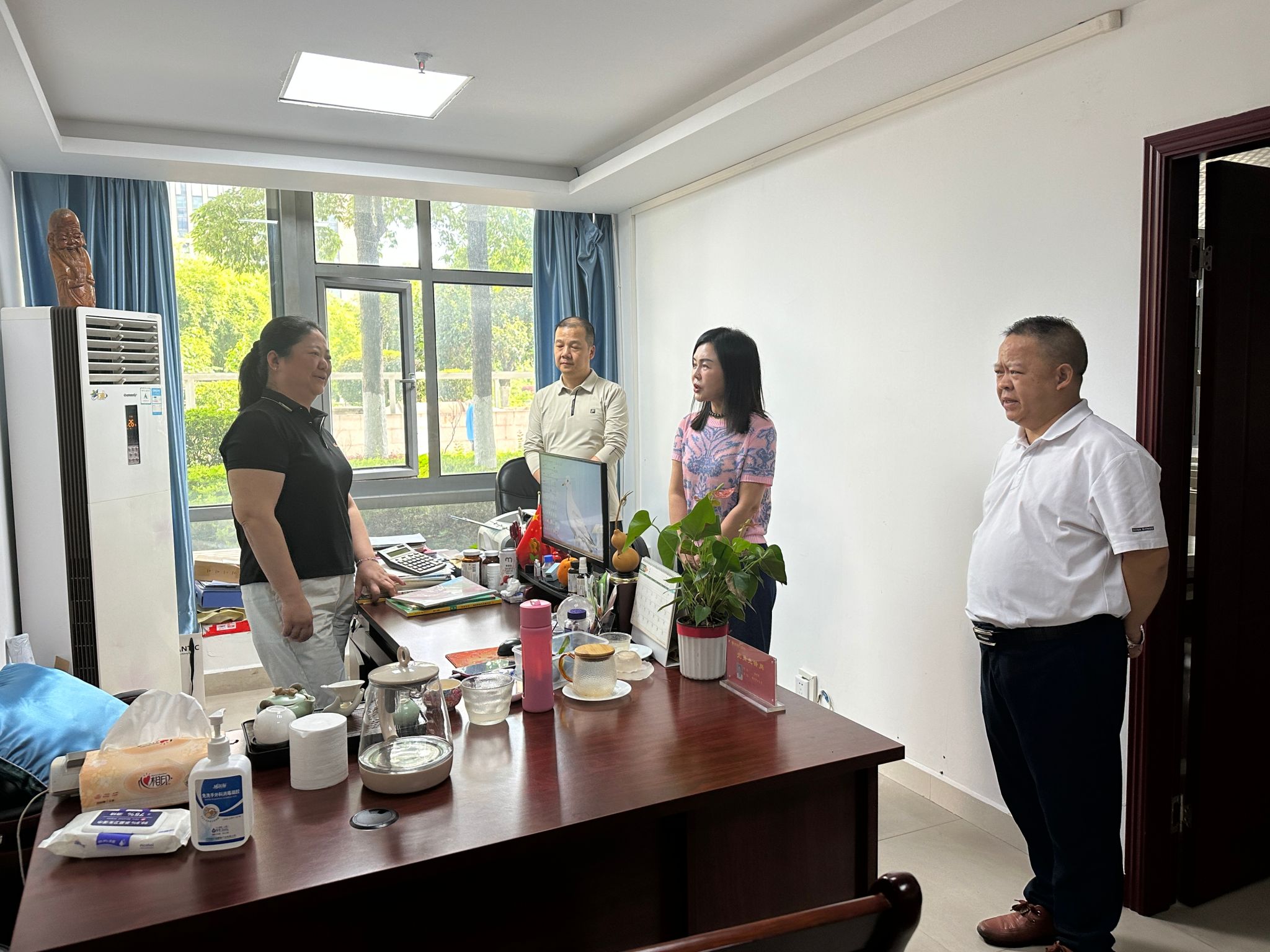 王燕一行深入南岸校区学院综合办、学历部、培训中心等重点场所、重点部位进行专项检查,提出指导性安全风险防范措施,并看望慰问教职工。