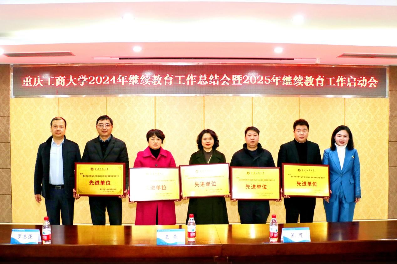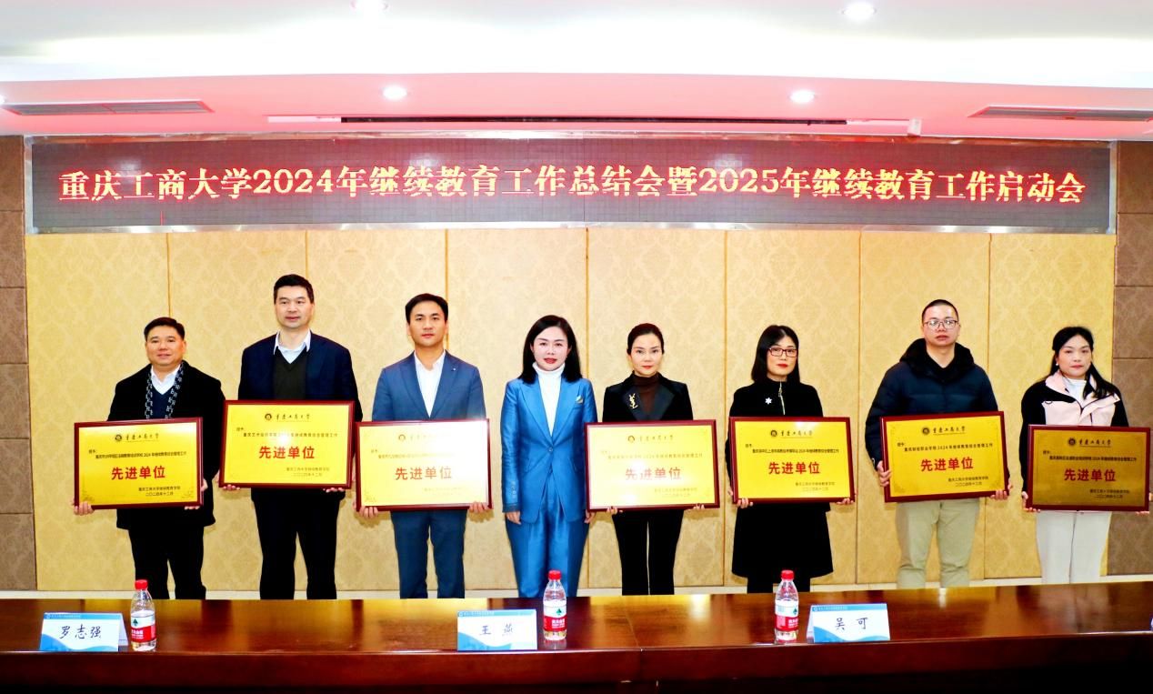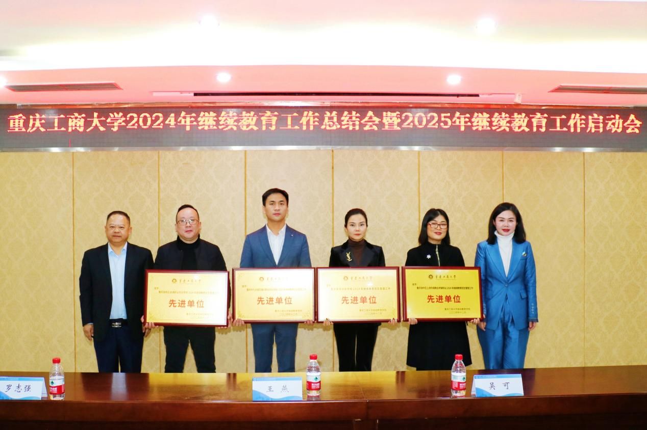 培训中心主任张译丹宣读继续教育先进集体表彰文件,重庆渝中区上清寺高教自考辅导站等4个单位获得招生管理先进单位,重庆华绣中等专业学校等5个单位获得教学管理先进单位,重庆高新区会通职业培训学校等7个单位获得综合管理先进单位,院长王燕、学历部副部长罗志强、工会主席陈之举分别为获奖单位颁奖。