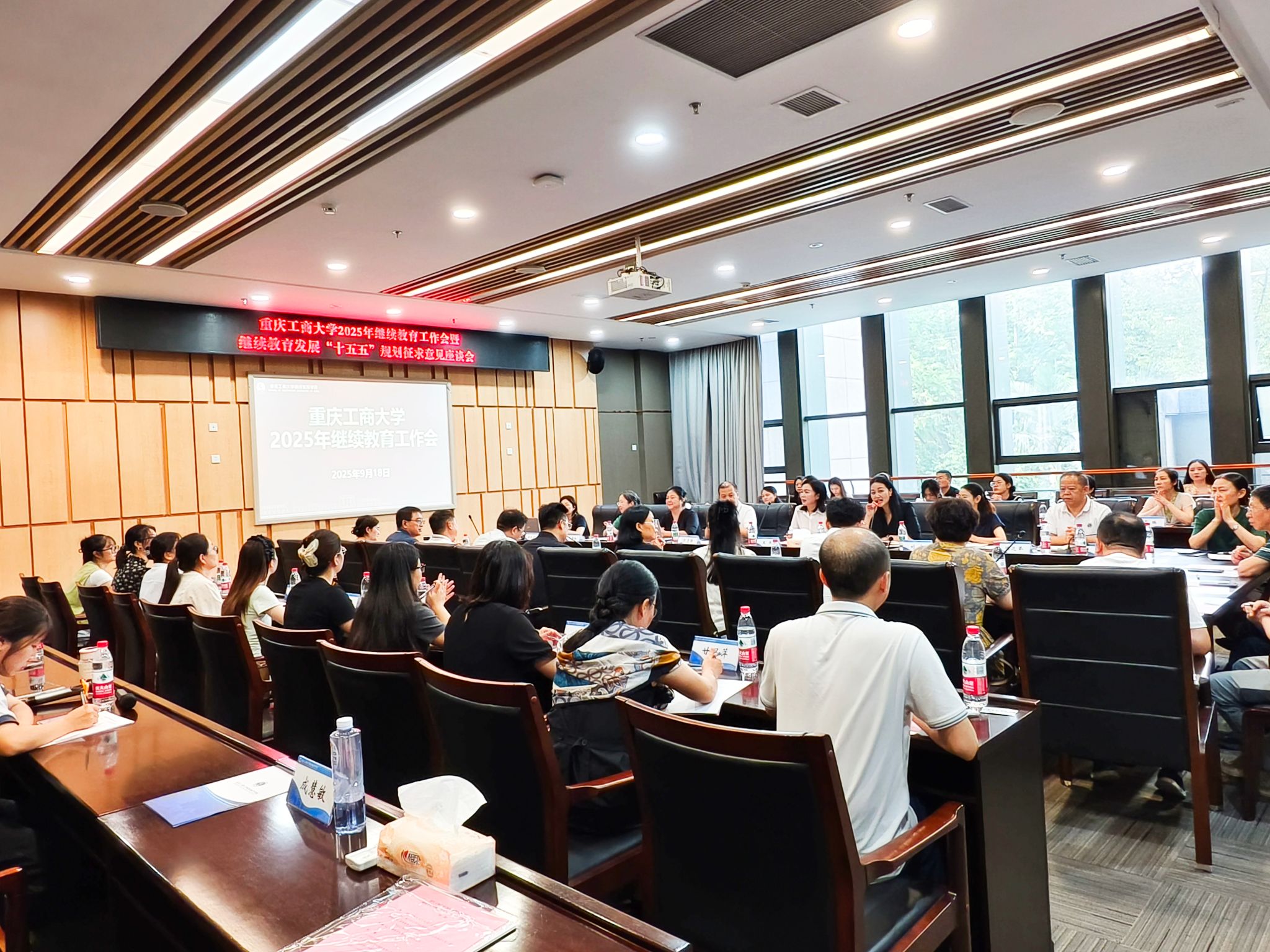 9月18日,2025年重庆工商大学继续教育工作会暨继续教育发展“十五五”规划征求意见座谈会,在图书馆第五会议室召开。77779193永利集团院长王燕及全体教师、校外合作单位负责人及相关工作人员共计50余人参会。会议由综合办主任吴可主持。