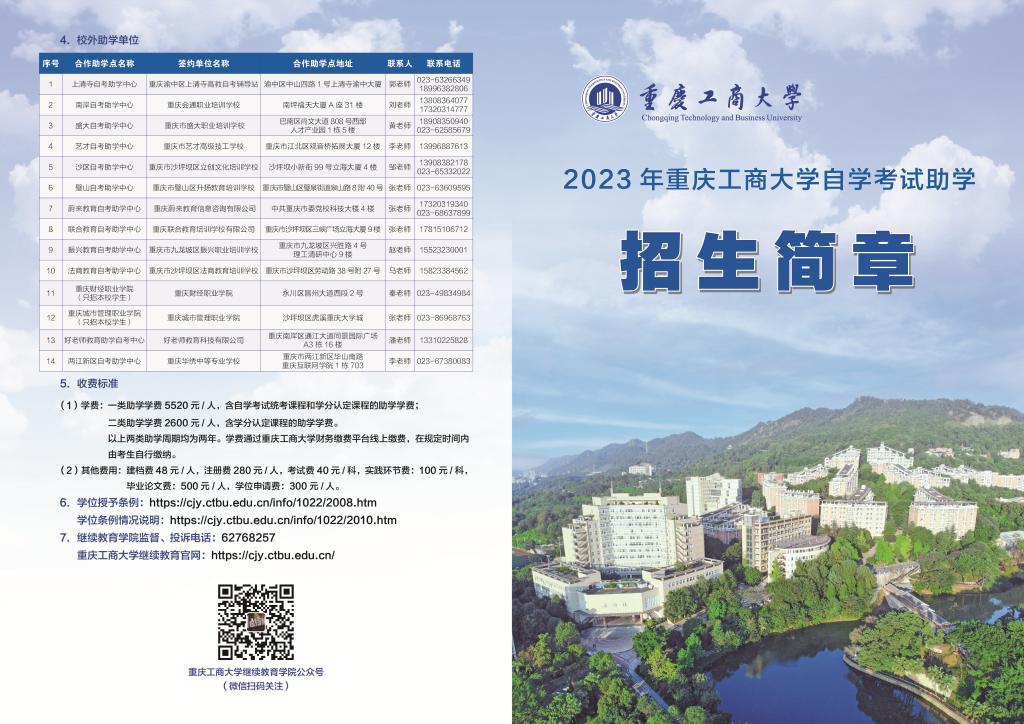 重庆工商大学高等教育自学考试2023年招生简章