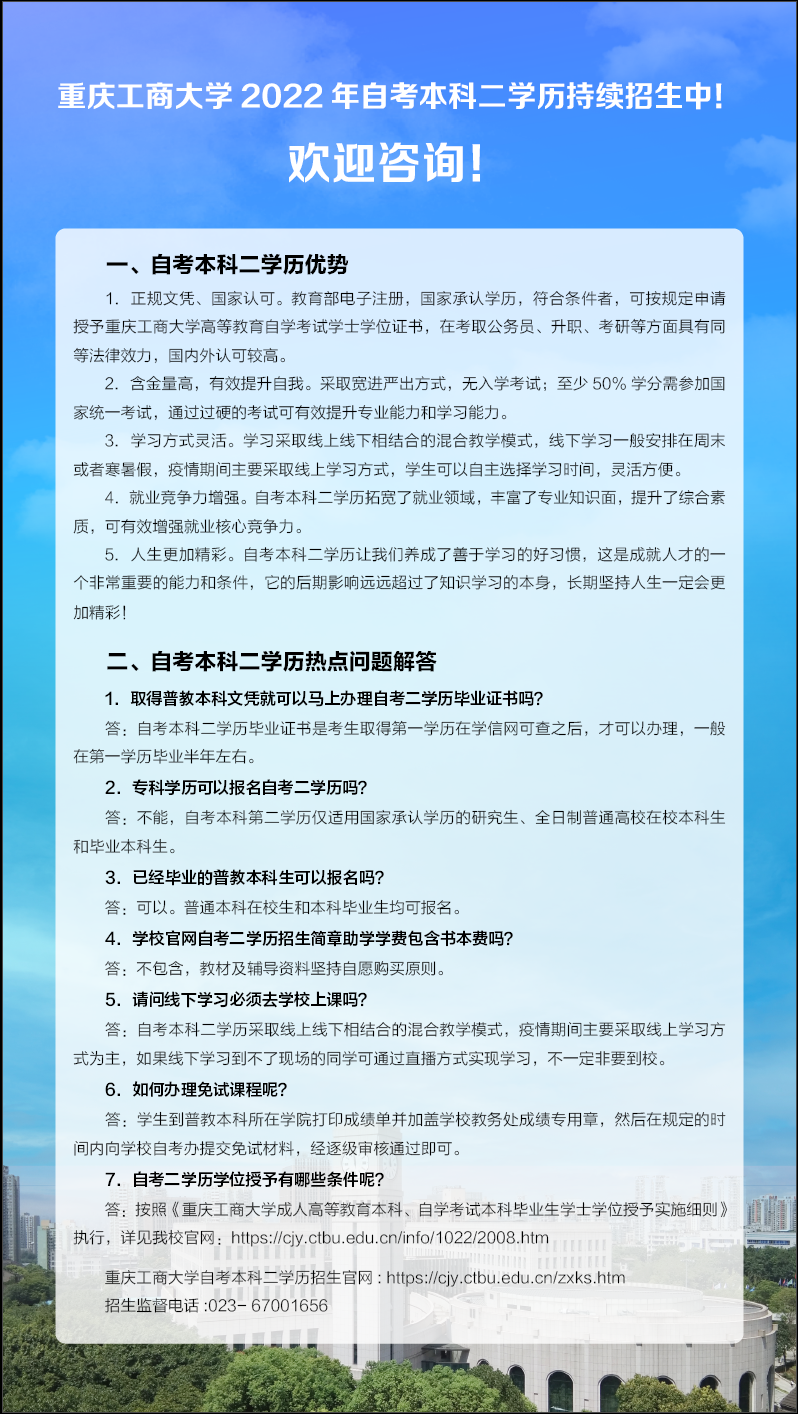 重庆工商大学2022年自考本科二学历持续招生中
