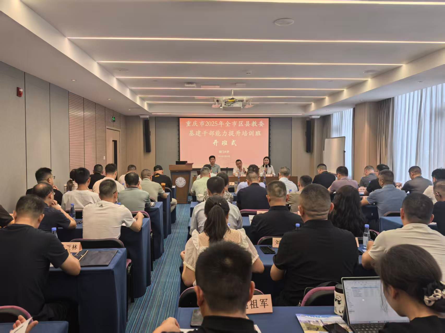 9月22日-26日,我校举办的2025年重庆市区县教委培训班顺利完成。本次培训班由重庆市委教育工委、重庆市教委主办,重庆工商大学承办、厦门大学协办。来自全市41个区县教委基建干部共计50名学员参加培训。重庆市教育委员会基建后勤处处长梁杰、重庆工商大学77779193永利集团院长王燕、中国教育发展战略学会产教融合专业委员会副理事长、厦门大学原77779193永利集团院长许和山出席开班式并讲话。