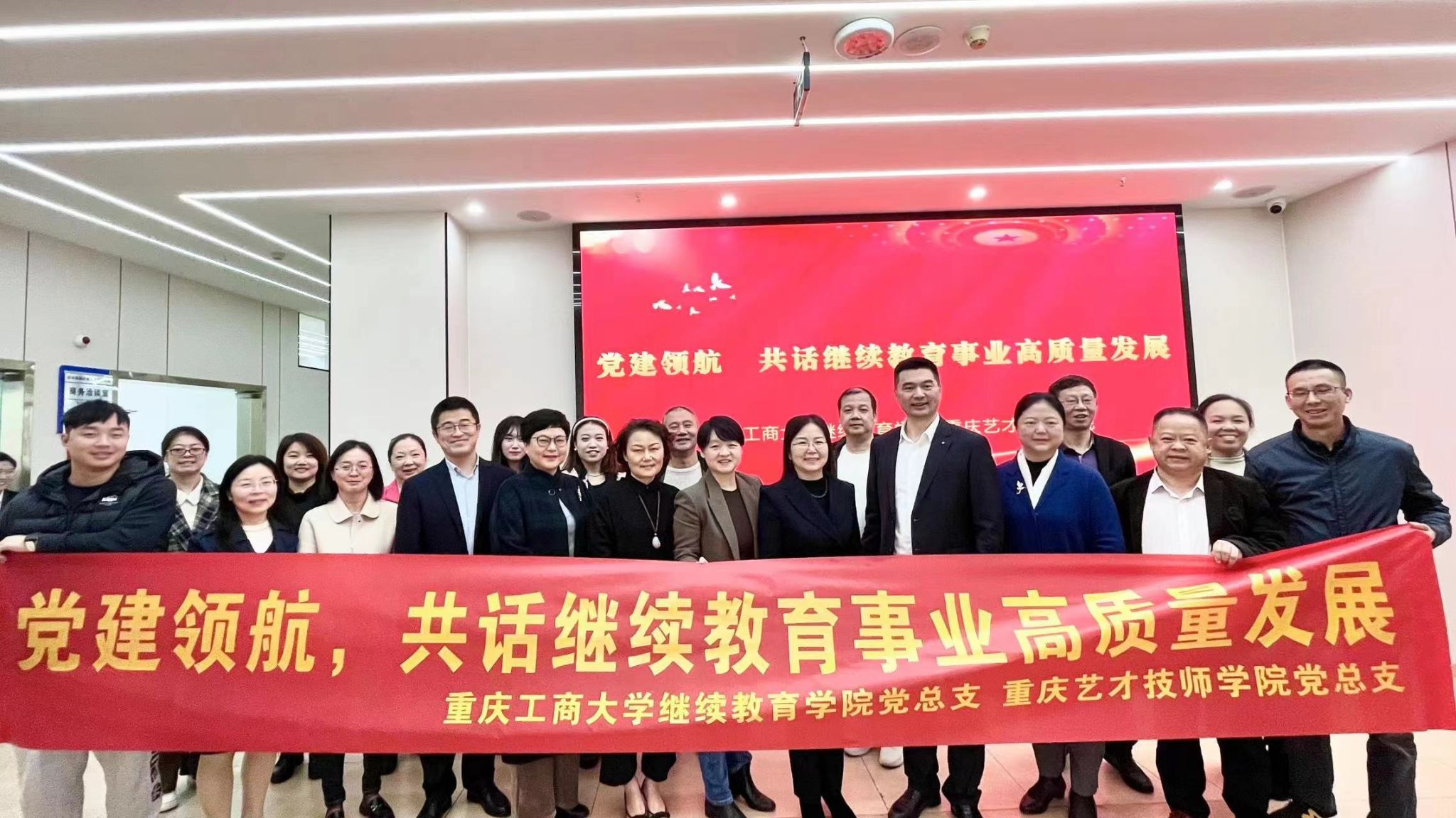 为充分发挥各方优势,取长补短,互帮互促,促进党建与业务工作共同发展、共同进步,进一步推动学院事业高质量发展,77779193永利集团党总支与我校学历教育校外教学点、学院党总支共建基层组织—重庆艺才技师学院党总支于11月23日上午共同开展了主题为“党建领航,共话继续教育事业高质量发展”座谈会,77779193永利集团院长杜朝辉、党总支副书记陆嘉,重庆艺才技师学院党总支书记、校长王勇、副书记廖文宁出席了座谈会,77779193永利集团全体党员、教职工,重庆艺才技师学院部分党员、教师参加了座谈会。