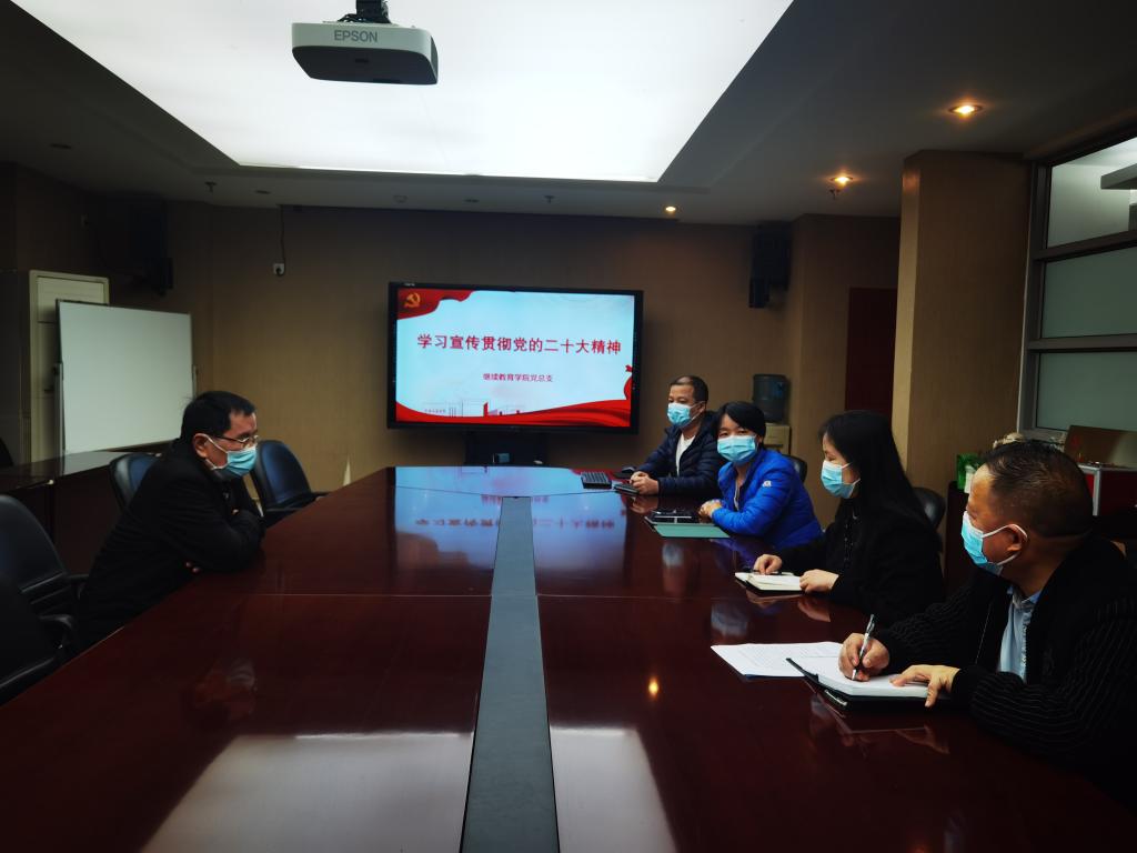 赵骅指出,学院要把学习宣传贯彻党的二十大精神作为当前和今后一段时期的重要政治任务抓落实,接下来要面向师生开展好宣讲工作,内容要精准,形式要多样。赵骅强调,学院要统筹好现阶段的各项工作和疫情防控工作,把贯彻落实党的二十大精神转化为坚决打赢疫情防控这场硬仗的必胜信心和强大动力,以实际成效忠诚拥护“两个确立”、坚决做到“两个维护”,以实际行动推动学院各项工作高质量发展。