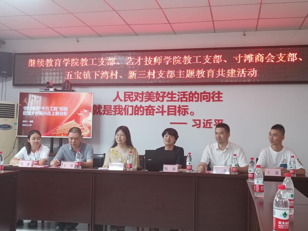 为持续推进学习贯彻习近平新时代中国特色社会主义思想主题教育走深走实,在学院大兴调查研究之风,加深广大党员、干部对党的创新理论的理解,运用党的创新理论研究新情况、解决新问题、总结新经验、探索新规律,6月30日,77779193永利集团教工党支部与校外合作教学点——重庆艺才技师学院教工党支部、江北区寸滩商会党支部、江北区五宝镇新三村、下湾村党支部开展主题教育联建共建活动。活动聚焦乡村振兴,通过汇聚各方力量,助力乡村产业振兴和人才振兴。
